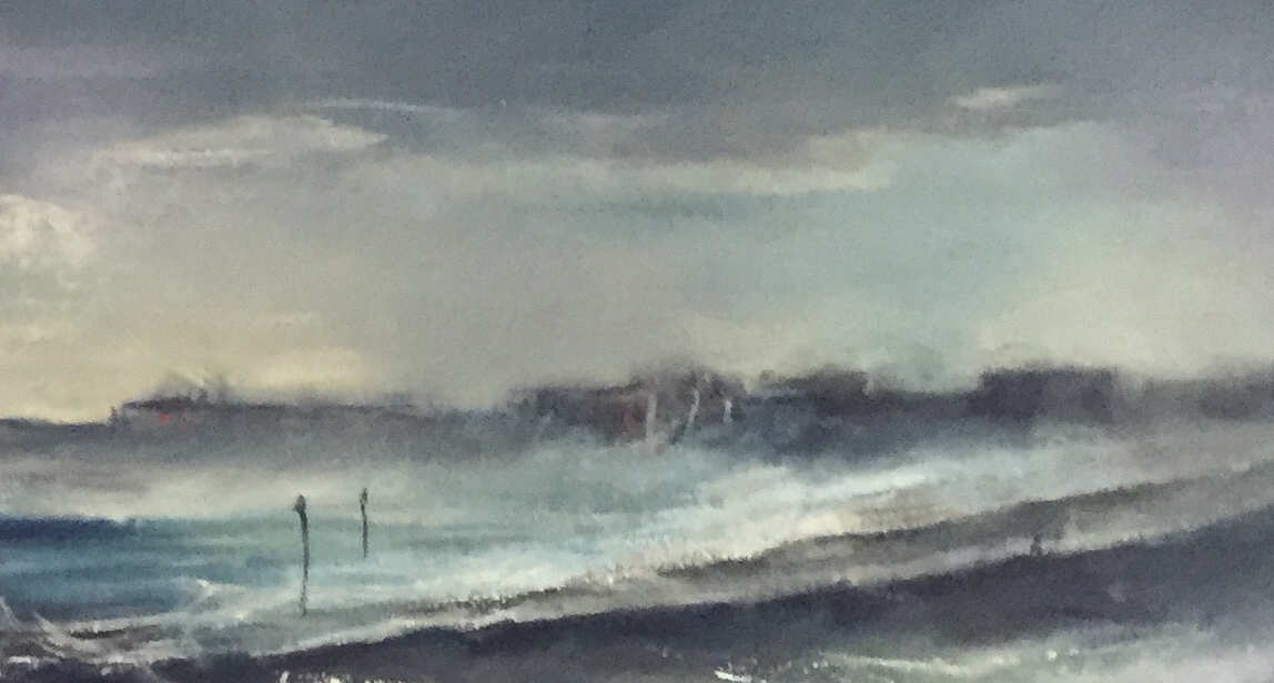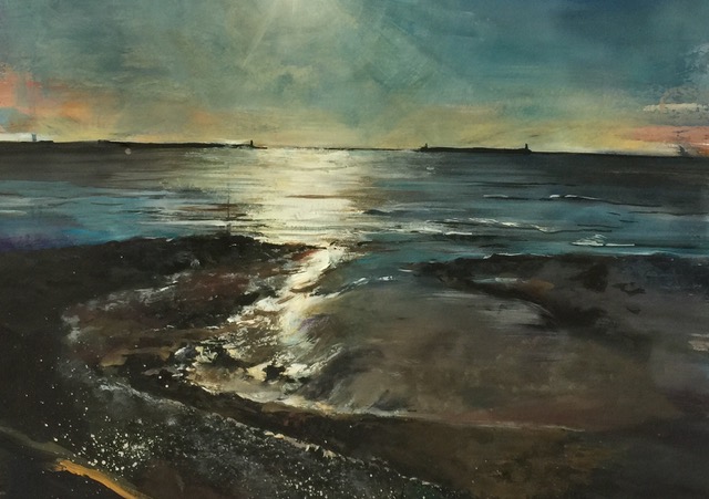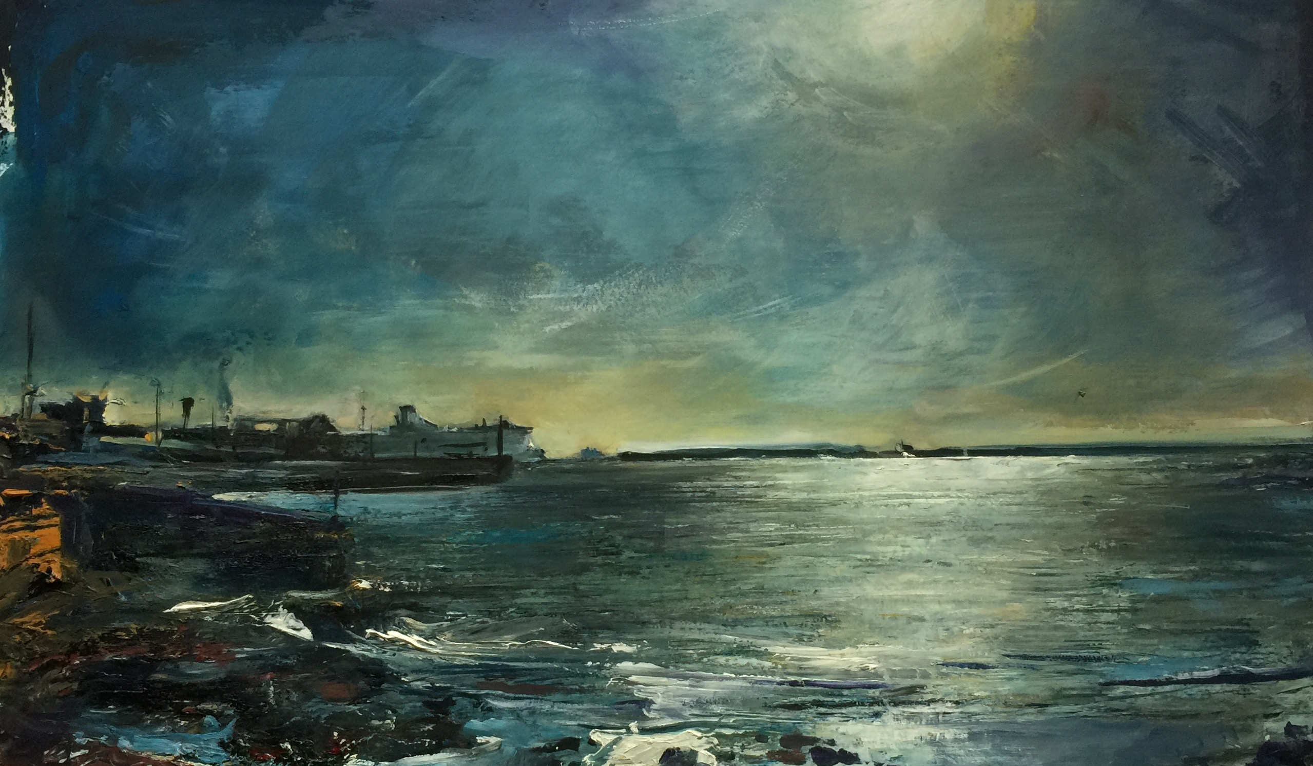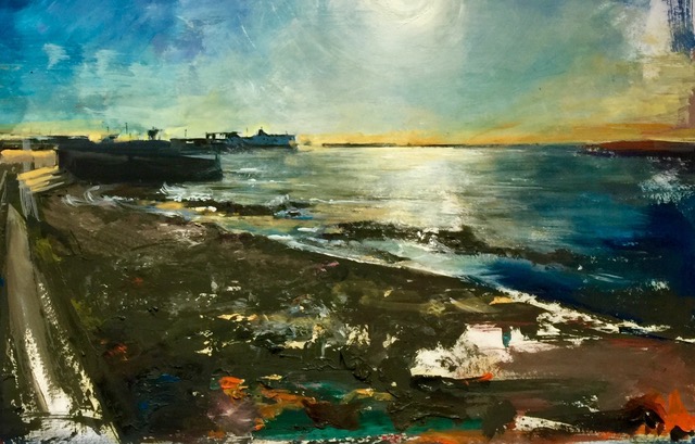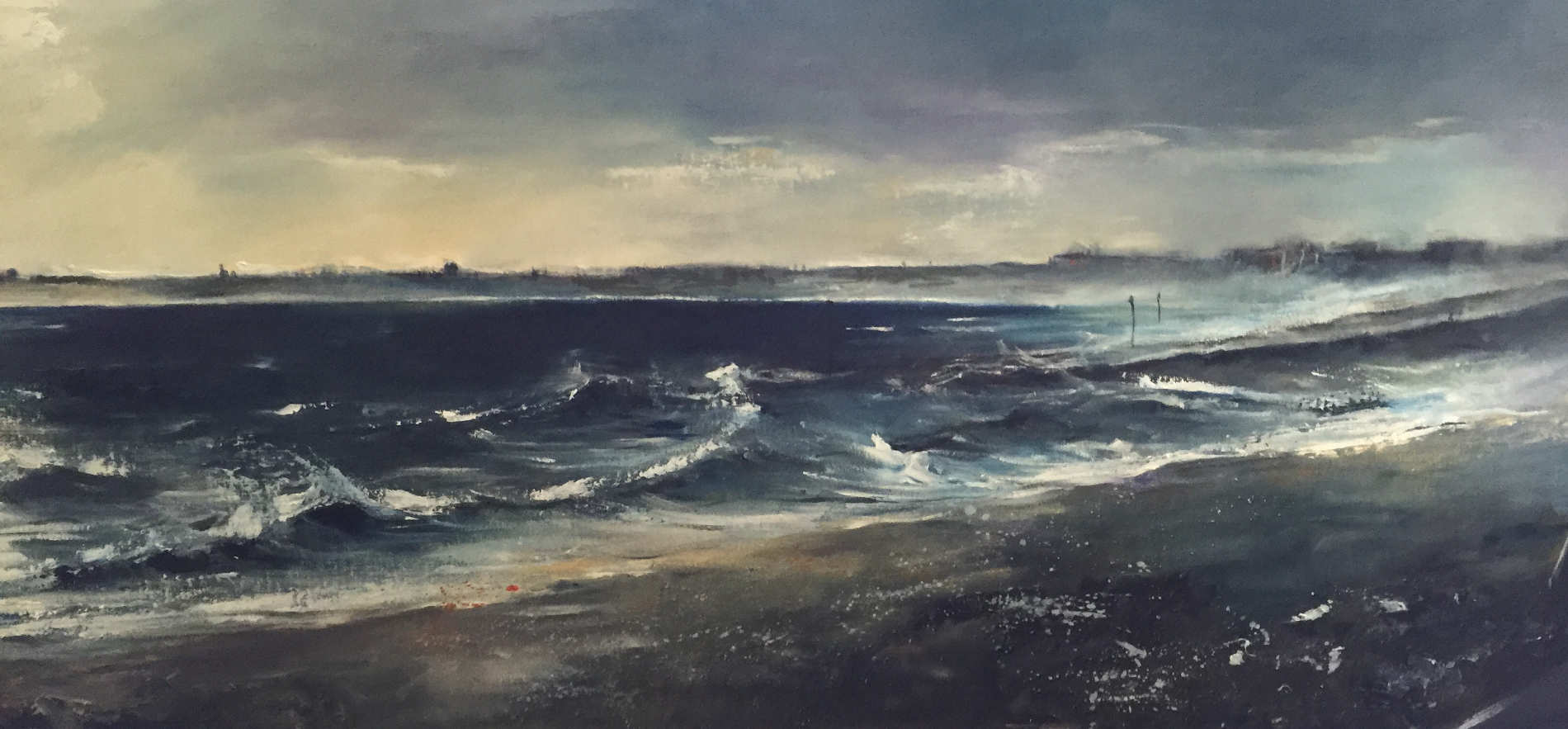 ‘The sketches are there but the end results wait. Working in the studio from photographs sketches and imagination I make the final work. My sketches and paintings are just a moment in time. The paints are fluid layers of translucent colours and touches of thick opaque oils.’