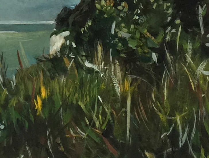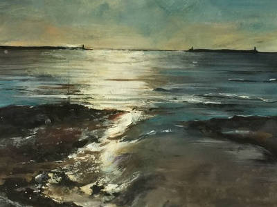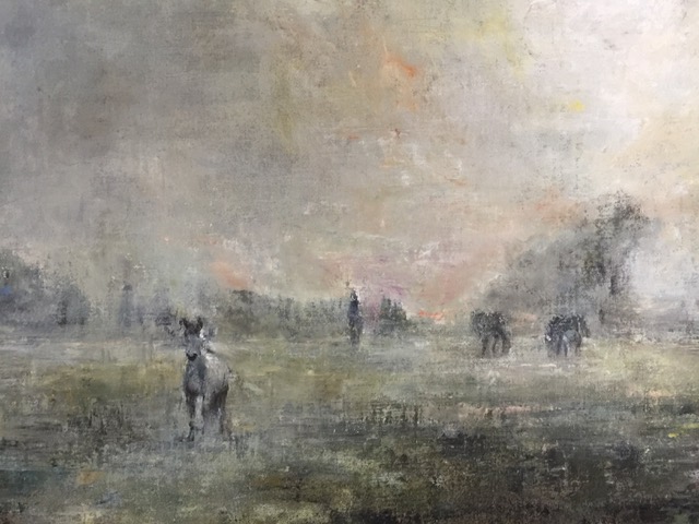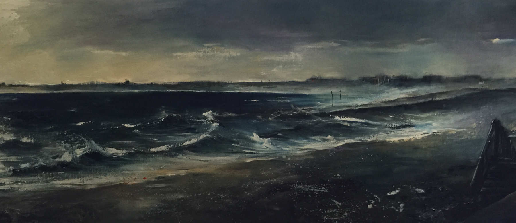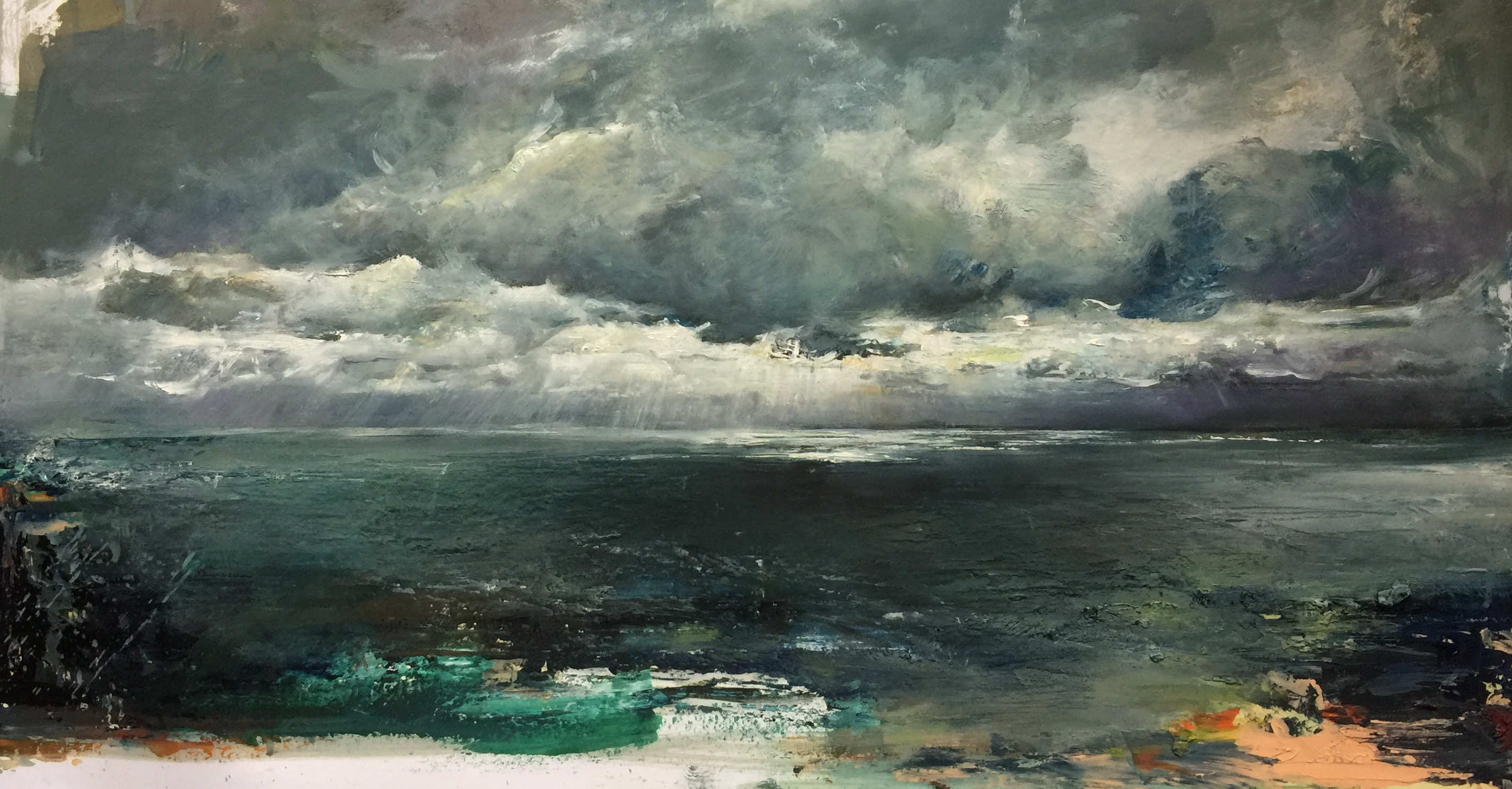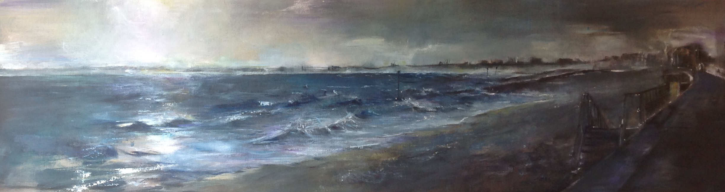 ‘The sketches are there but the end results wait. Working in the studio from photographs sketches and imagination I make the final work. My sketches and paintings are just a moment in time. The paints are fluid layers of translucent colours and touches of thick opaque oils.’